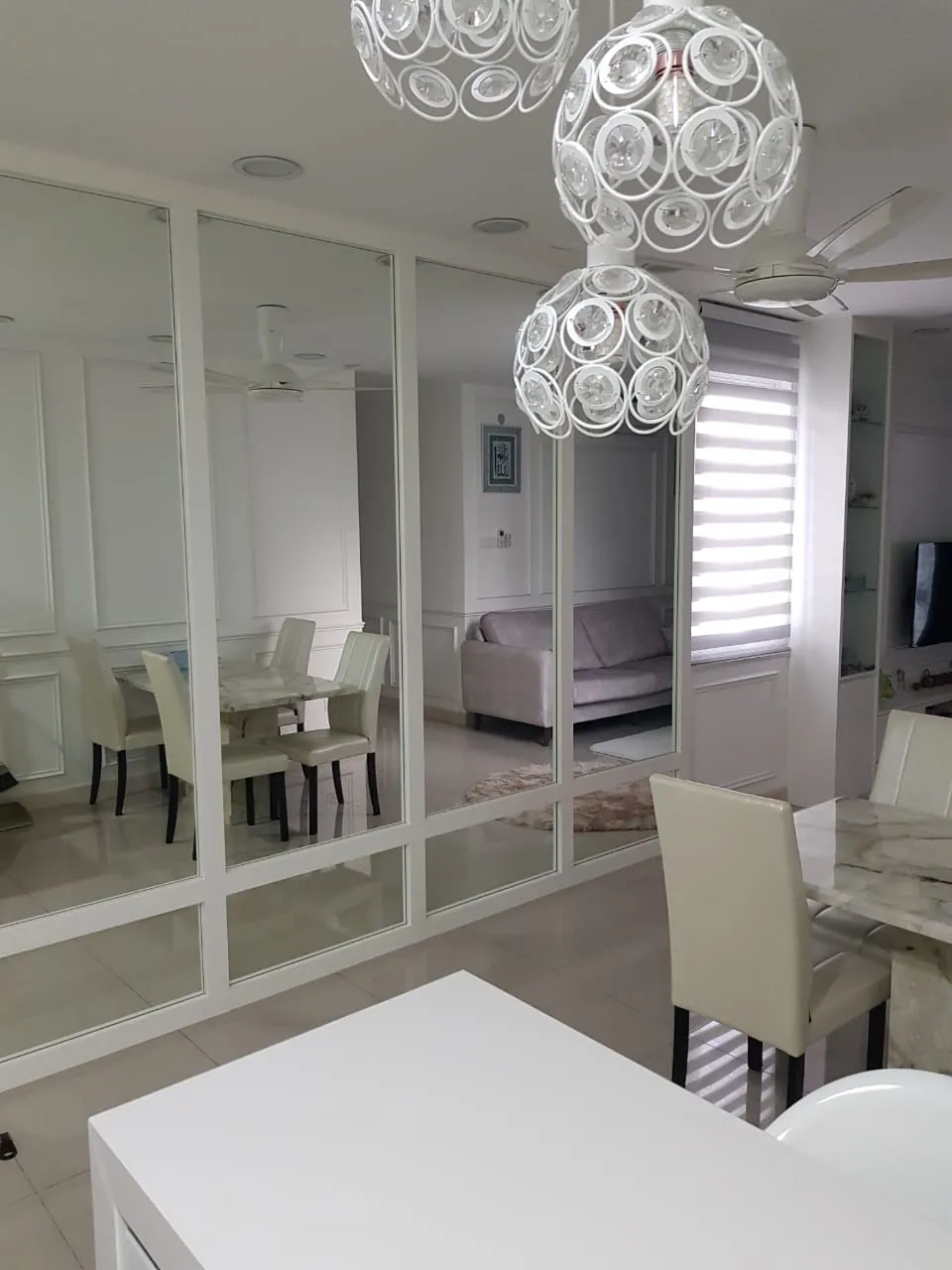 – Fully furnished with TV cabinet, sofa, TV, bedroom set, dining table set, fridge and washing machine.