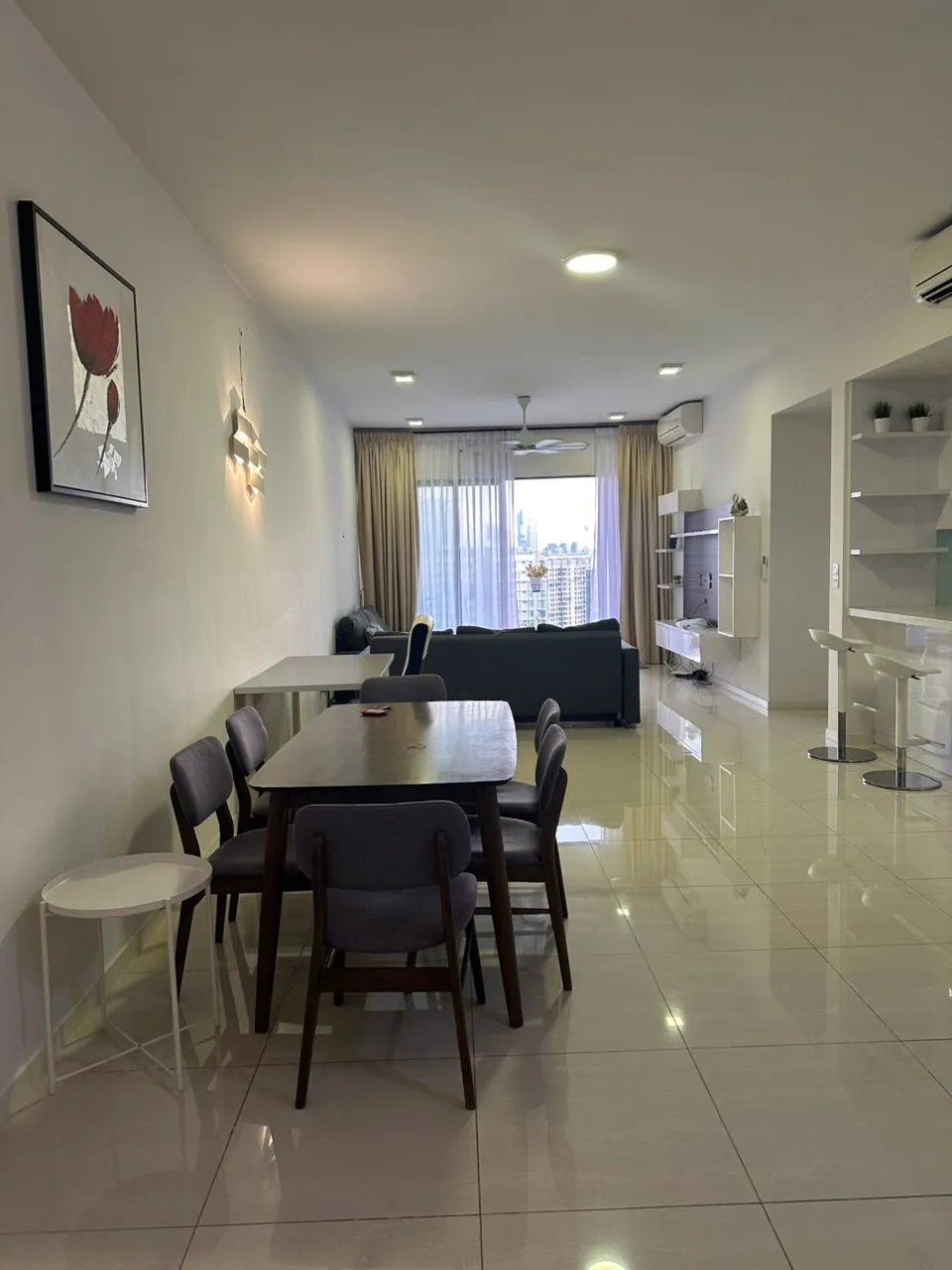 – Fully furnished with sofa, TV, TV cabinet, bedroom set, dining table set, fridge and washing machine