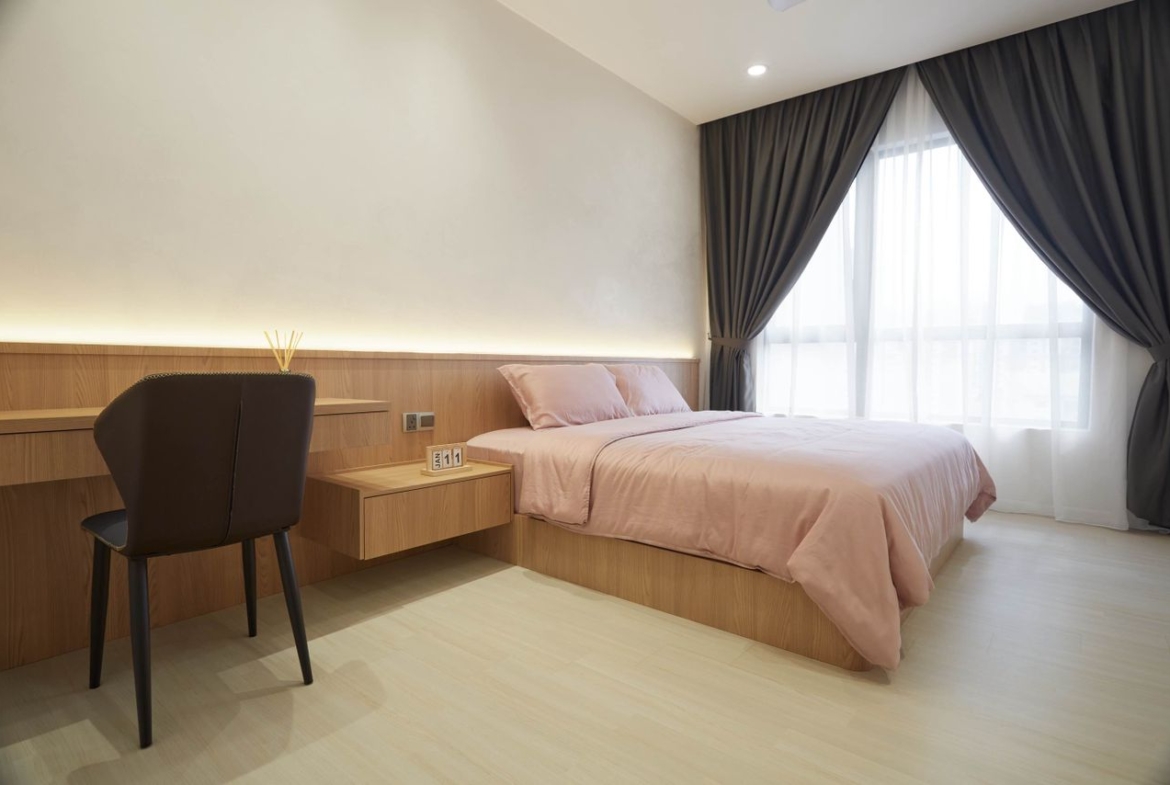 – Partly furnished with bed, wardrobe, cabinet (as per photos show)