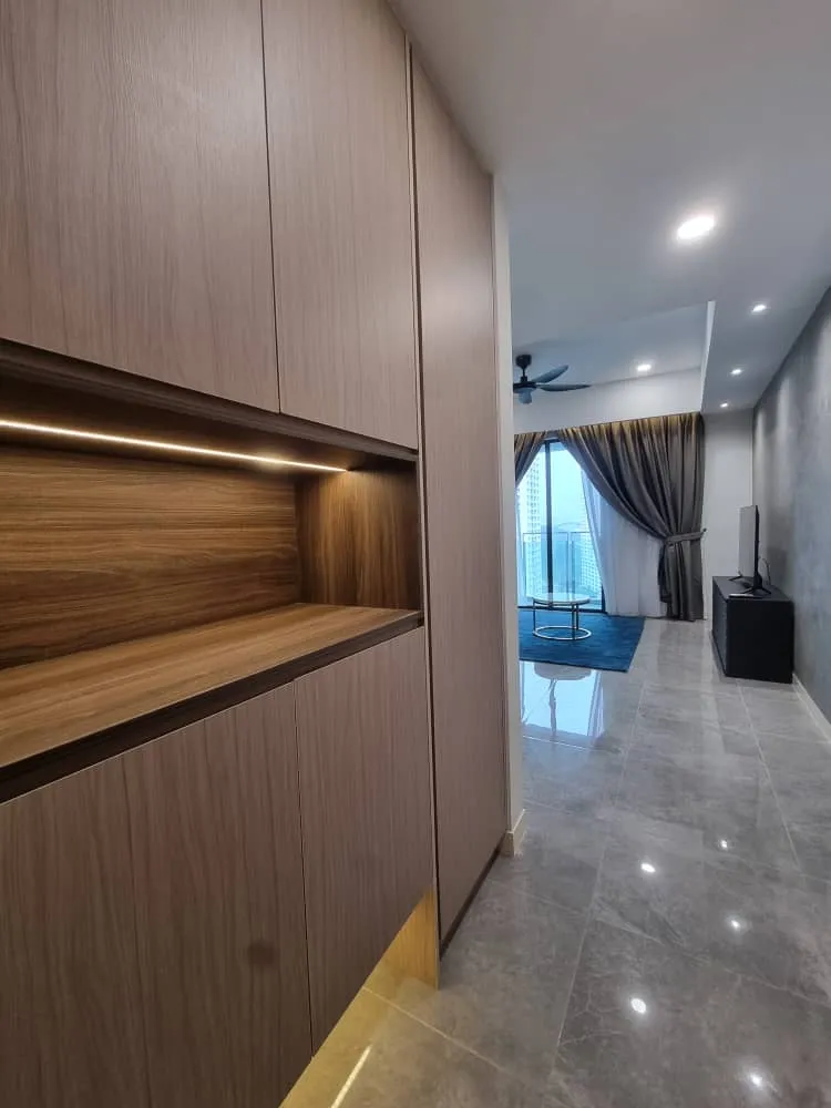 – Fully furnished with TV, sofa, TV cabinet, dining table set, bedrooms set, fridge and washing machine