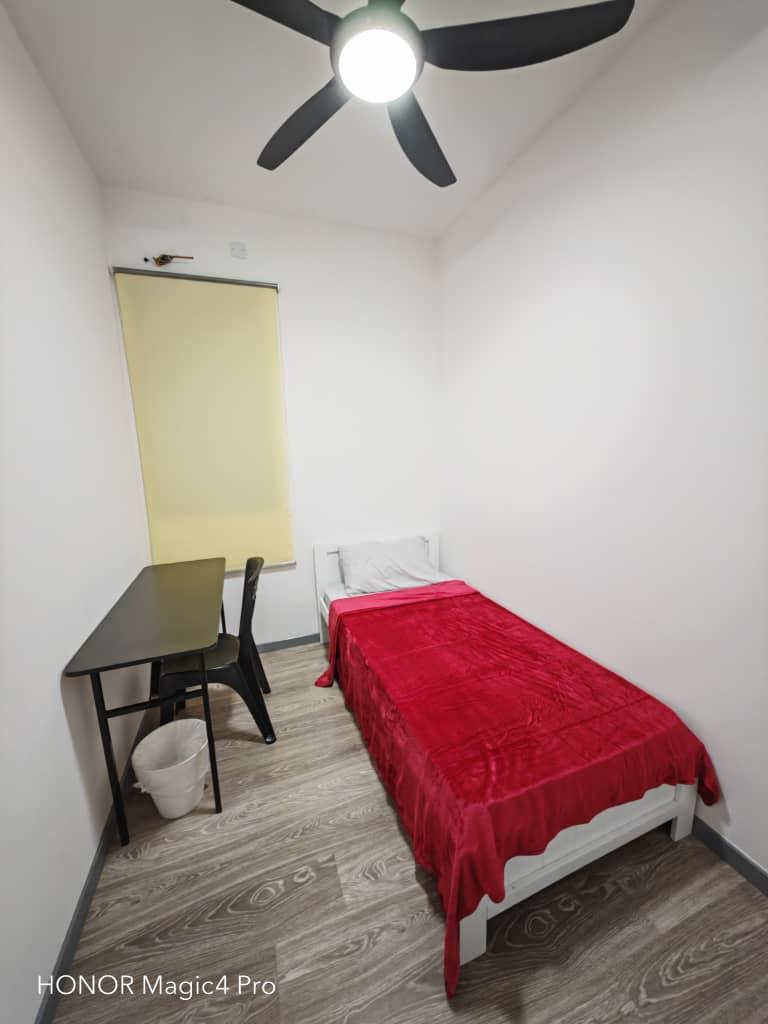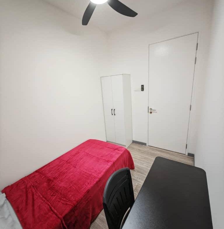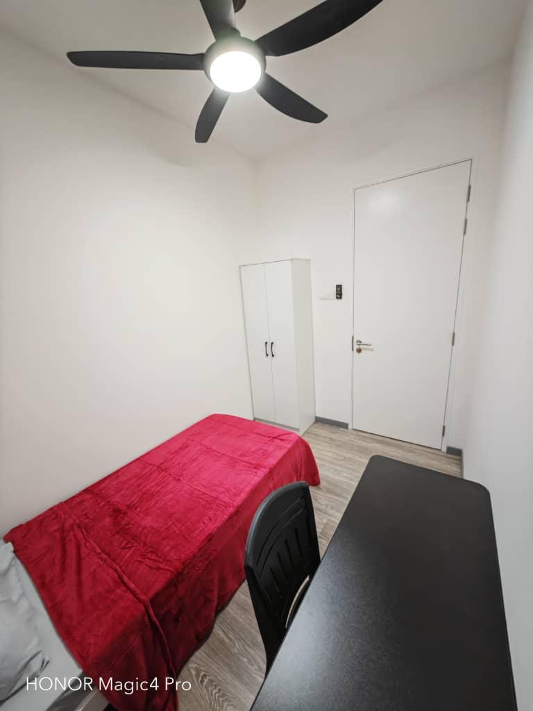 – 110sf – single room with single bed, wardrobe, study table & chair, curtain, fan & lighting. – share bathroom – included WIFI